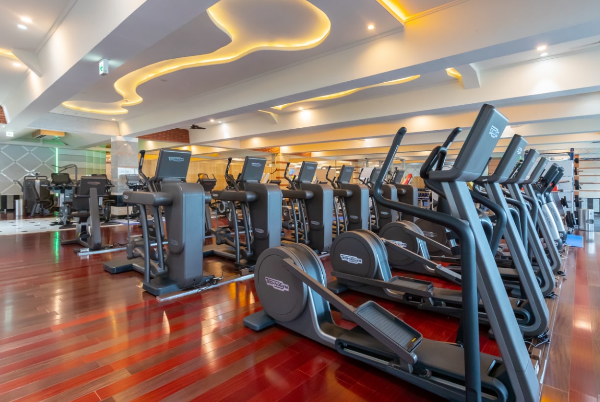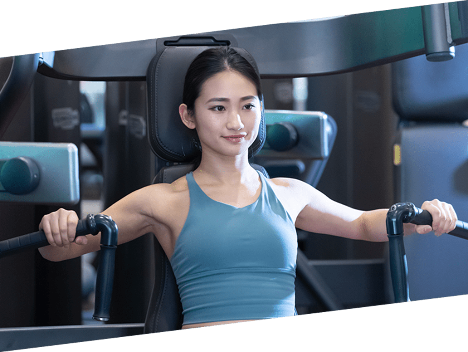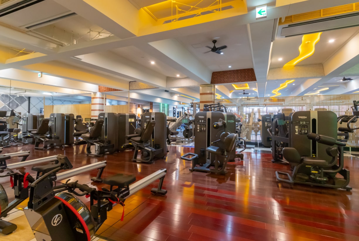 ランニングマシン16台 / バイク21台 / リカンベント3台 / クロストレーナー7台 / ヴァリオ3台 / ローイングマシン4台 / トップ2台 / パワーミルクライマー1台 / スキルミル1台 / プレートローディングマシン8台 / ウエイトスタックマシン31台 / パワープレート1台 / スミスマシン3台 / パワーラック3台 / オリンピックフラットベンチ2台 / ケーブルステーション1台