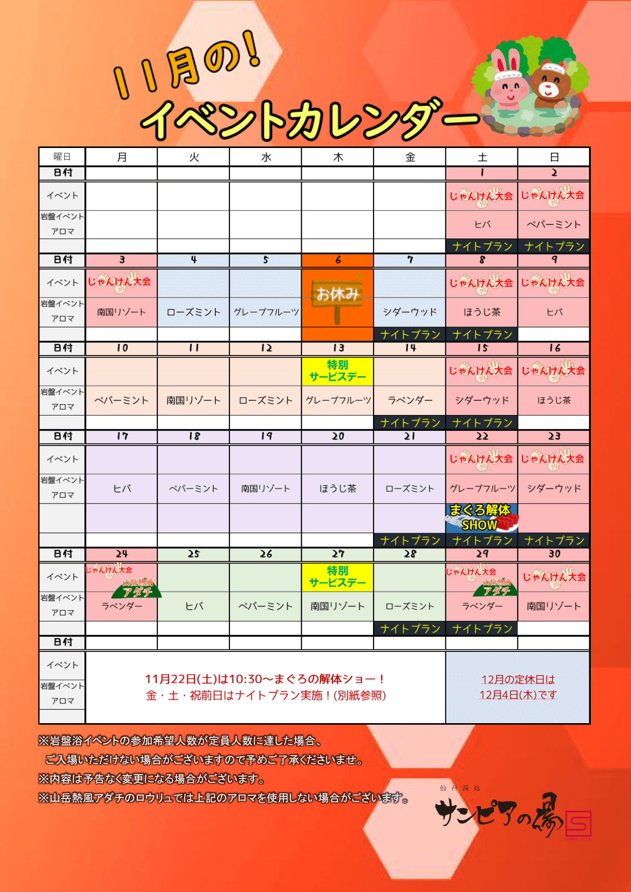 いつも仙台湯処 サンピアの湯をご利用いただき誠にありがとうございます。