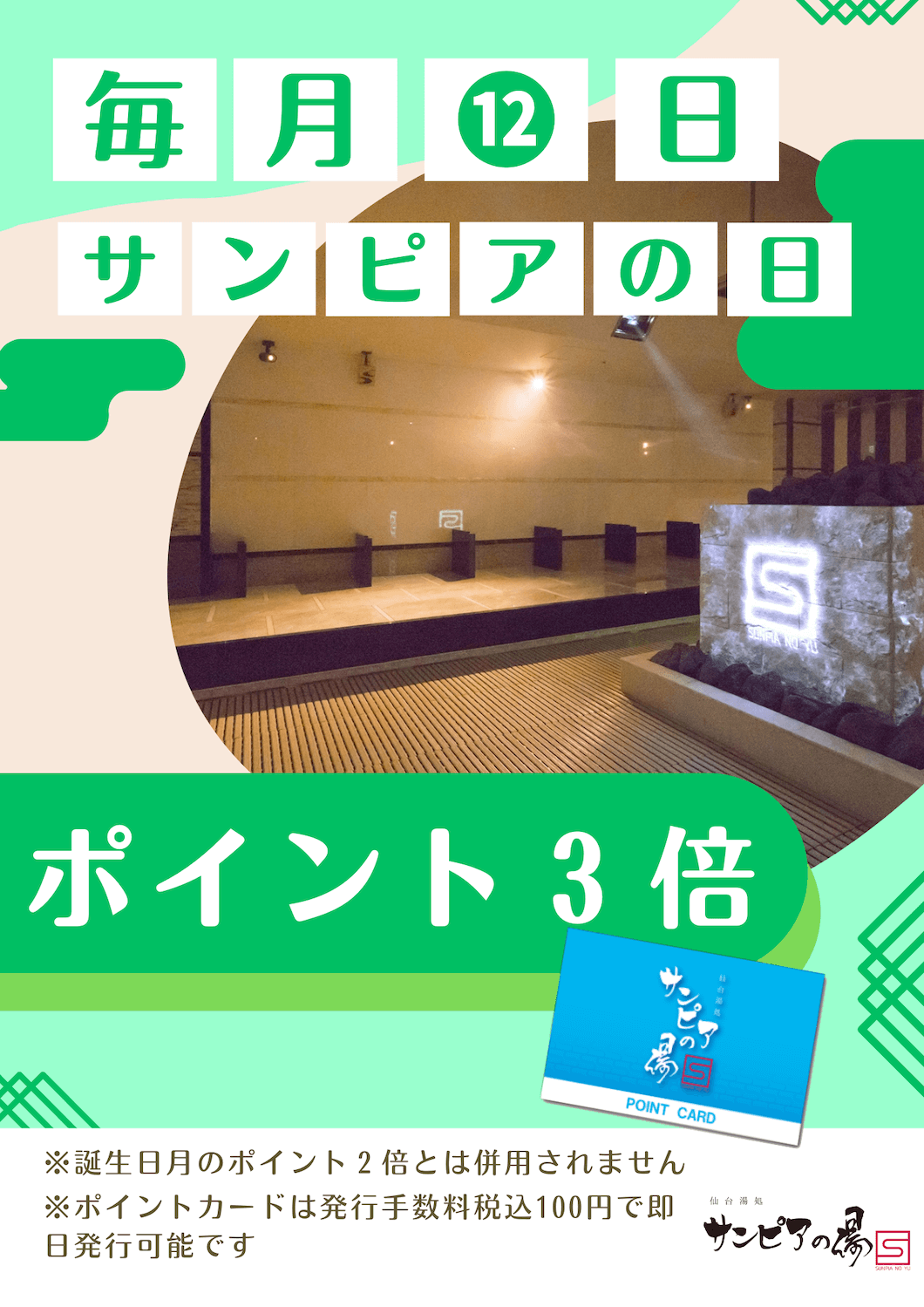 毎月12日のサンピアの日はポイントが3倍になる機会となっております!